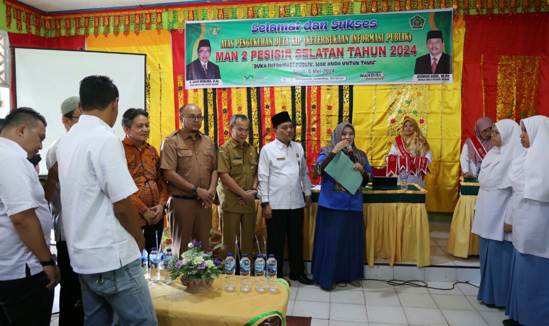 Sekwan juga menyampaikan rasa bangga dan senang adanya duta-duta KIP di MAN 2 Pessel, yang diharapkan bisa berjuang dalam pengelolaan informasi publik guna meningkatkan kecerdasan masyarakat.