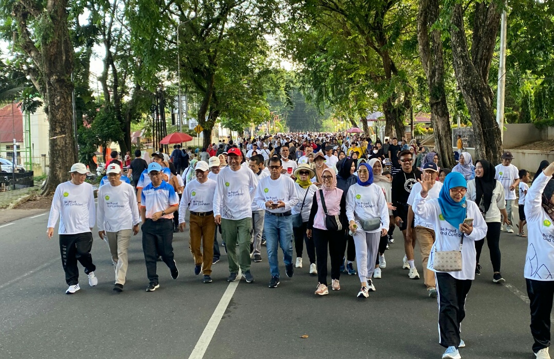 Mereka bersama mengibarkan bendera start tanda dimulainya jalan santai, yang diikuti ribuan peserta. Rute jalan santai dimulai dari perempatan lampu merah simpang Telkom, menuju depan kantor Kodim, dan berakhir kembali di GOR H. Agus Salim.