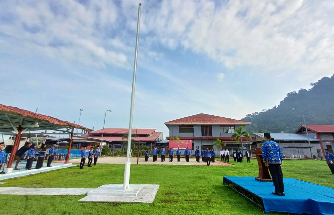 Acara yang berlangsung dengan khidmat ini dihadiri oleh seluruh jajaran petugas Rutan Kelas IIB Padang, yang mengenakan pakaian batik Korpri sebagai simbol kebersamaan dan kebanggaan nasional.