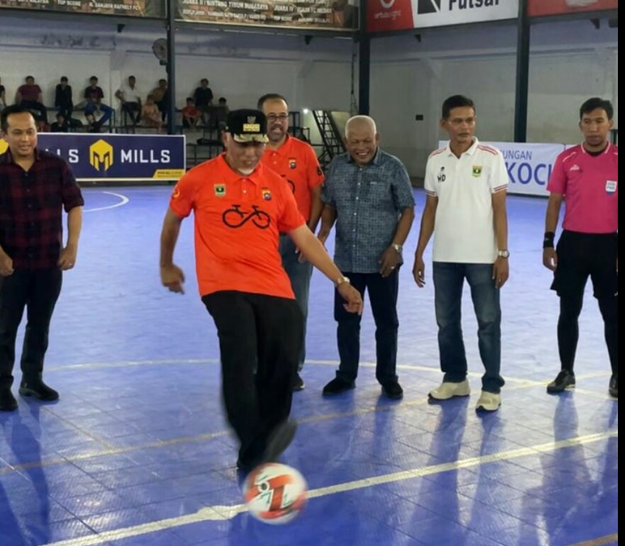 (Ket Poto: Gubernur Mahyeldi Lakukan Tendangan Bola Tanda Pertandingan LFN Dimulai)
