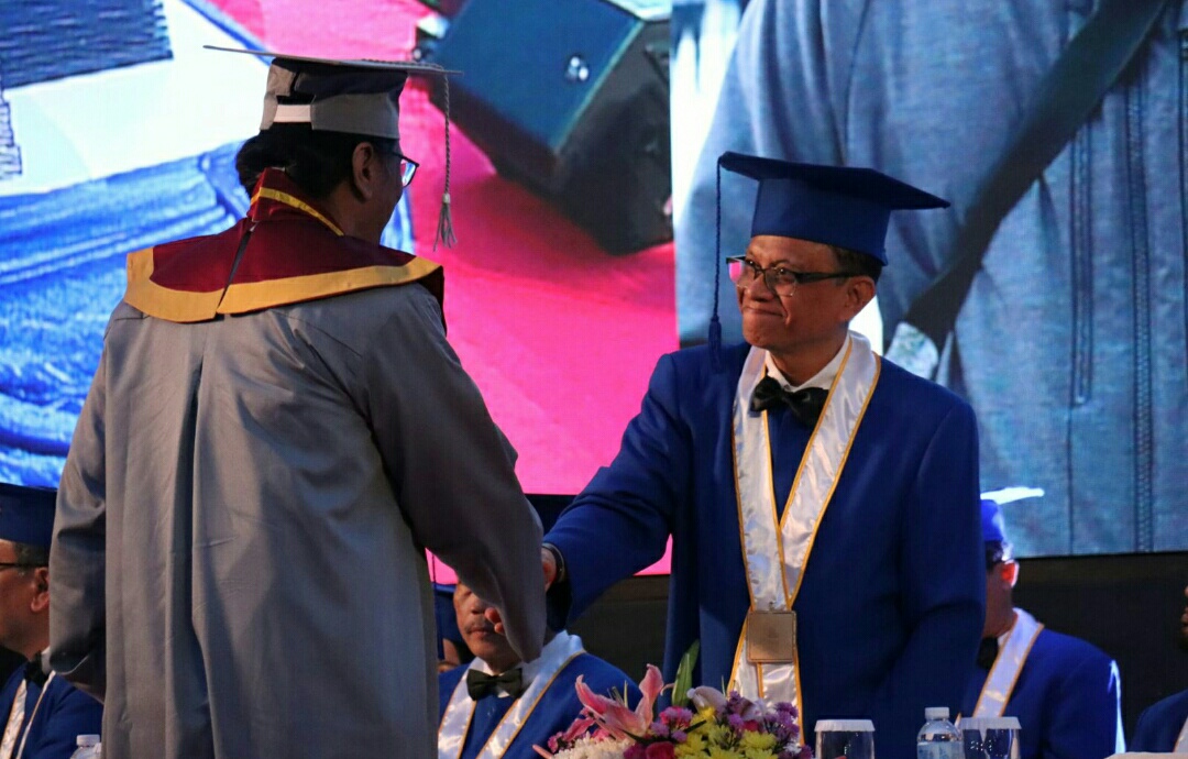 “Lulus dari perguruan tinggi bukan berarti akhir dari segalanya, kalian telah membuka pintu ke dalam dunia profesi yang luas sehingga kalian harus terus berjuang untuk menunjukkan kemampuan terbaik, di dalam berbagai bidang ilmu yang didapat, kalian harus bisa menjadi agent of change didalam masyarakat dan juga membawa kebaikan bagi seluruh orang.”