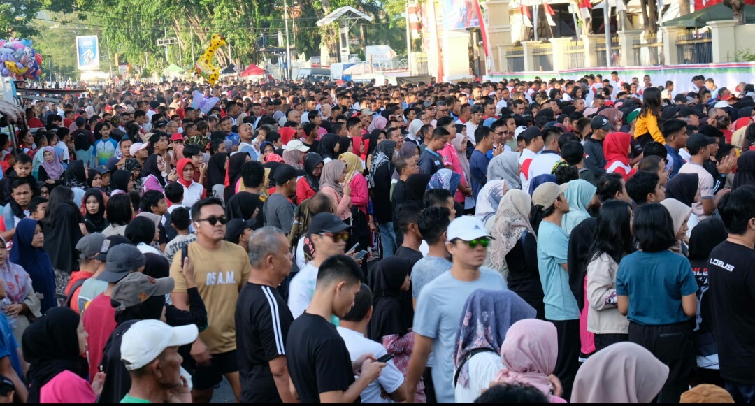 IWOSUMBAR.COM, PADANG- RIBUAN masyarakat Kota Padang bersama anggota polisi tampak antusias menyusuri sepanjang jalan kota Padang guna mengikuti kegiatan Jalan Santai yang dilaksanakan oleh Kepolisian Sumatera Barat.
