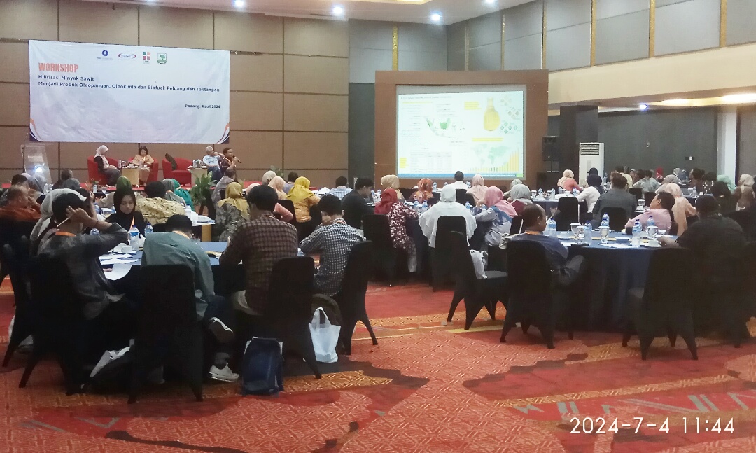 IWOSUMBAR.COM, PADANG -PUSAT Penelitian Surfaktan dan Bioenergi (SBRC IPB University) bekerja sama dengan Badan Pengelola Dana Perkebunan Kelapa Sawit (BPDPKS) menggelar Workshop bertema “Hilirisasi Minyak Sawit Menjadi Produk Oleopangan, Oleokimia dan Biofuel: Peluang dan Tantangan”. Kamis 4 Juli 2024 di Truntum Hotel Padang.