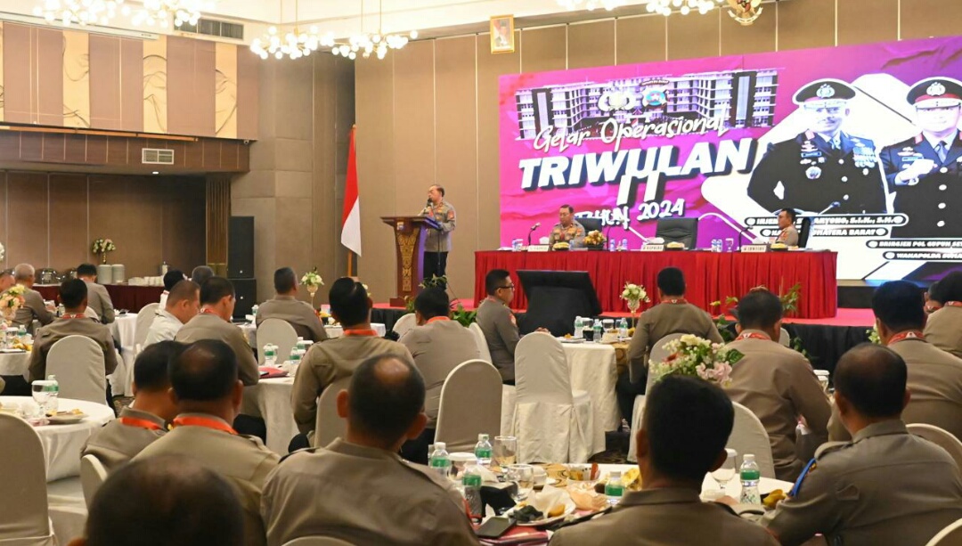 IWOSUMBAR.COM, PADANG- Polda Sumatera Barat adakan Gelar Operasional (GO) bulanan TW II T.A 2024 di Ballroom hotel Pangeran Beach Padang. Rabu (17/7).