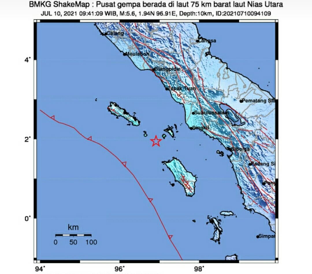 IWOSUMBAR.COM, NIAS – GEMPA dengan berkekuatan Magnitudo (M) 5,6 terjadi di Kabupaten Nias. Warga sempat terkejut merasakan dampak dari getaran gempa yang terjadi pada Sabtu (10/7) pukul 09.41 WIB.