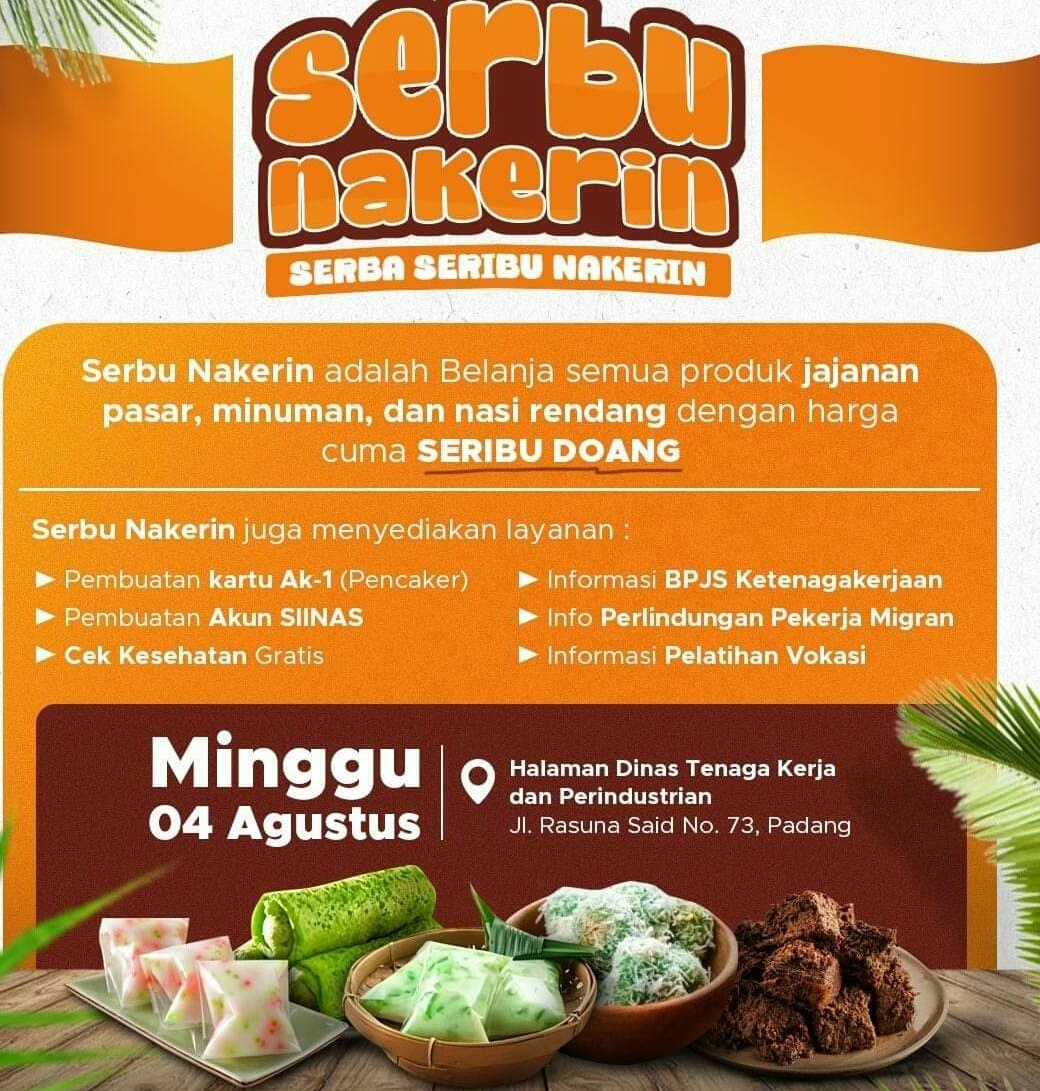 IWOSUMBAR.COM, PADANG- Dalam rangka memperingati Hari Jadi Kota (HJK) Padang yang ke-355, Disnakerin akan menggelar acara “Serbu Nakerin” pada 4 Agustus mendatang di halaman Kantor Disnakerin.