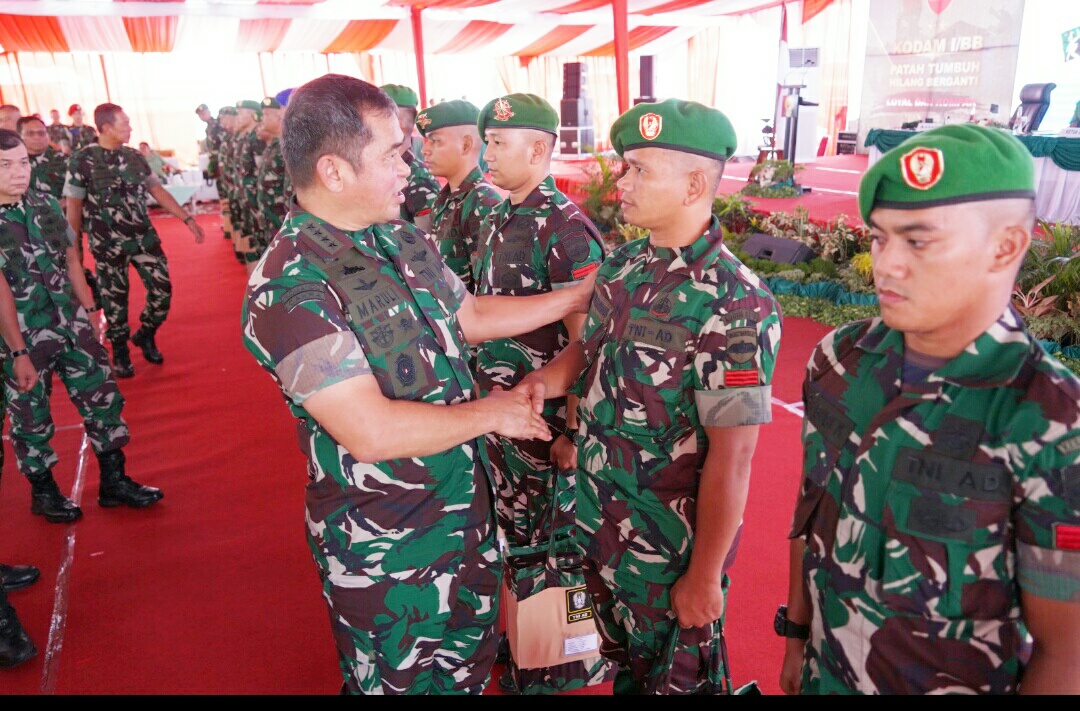 Kasad juga secara simbolis menyerahkan paket perlengkapan perorangan lapangan (Kaporlap) kepada perwakilan personel Korem 032/Wbr.