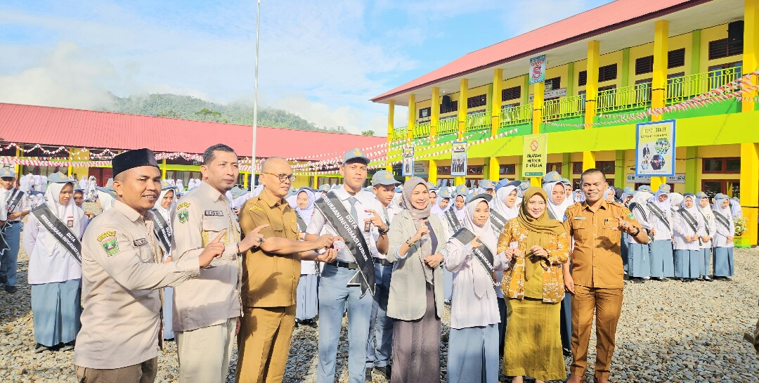 IWOSUMBAR.COM, LUBUK SIKAPING -Wakil Ketua Komisi Informasi (KI) Sumbar, Tanti Endang Lestari dan Komisioner Mona Sisca bersama Dinas Kominfotik Provinsi Sumbar Bidang IKP Indra Sukma mengukuhkan 150 orang siswa sebagai Duta Keterbukaan Informasi Publik di Lapangan Upacara SMKN 1 Lubuk Sikaping, Pasaman. Senin 12 Agustus 2024.