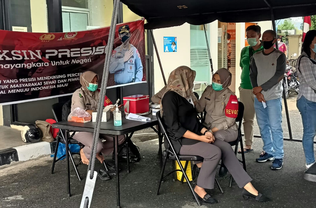Gerai Vaksin Presisi yang diselenggarakan oleh Polda Sumbar di lapangan parkir, Selasa (13/7) disambut antusias oleh warga.