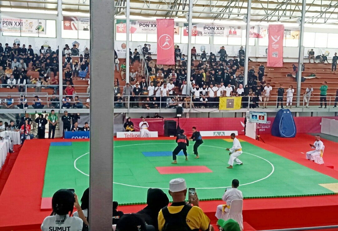 IWOSUMBAR,.COM, MEDAN – Cabang olahraga Pencak Silat Pekan Olahraga Nasional (PON) 2024 digelar di GOR Veteran Disporasu Kota Medan, Senin (9/9/2024).