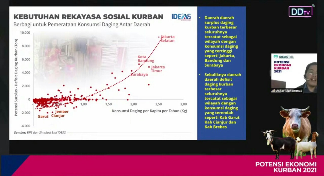 “Resesi panjang dalam setahun terakhir dipastikan membuat semakin banyak masyarakat yang jatuh ke kelas ekonomi yang lebih rendah, sehingga menekan jumlah dan nilai kurban dari keluarga muslim,” ungkap Askar.