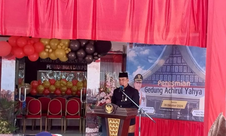 Peresmian Gedung Achirul Yahya dilakukan oleh Penjabat (Pj) Wali Kota Padang Andree Algamar didampingi Pj Ketua TP-PKK Ny. Vanny Andree Algamar, serta dihadiri keluarga besar almarhum, termasuk istri almarhum, Ny. Noer Moesalmi, pada Senin (28/10/2024).