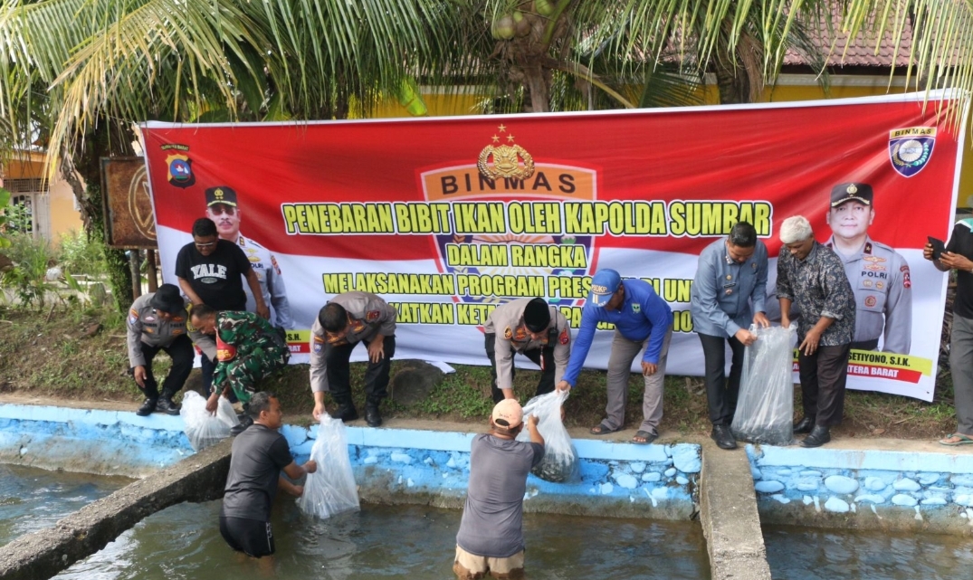 IWOSUMBAR.COM, PADANG- Dalam upaya mendukung program ketahanan pangan yang menjadi prioritas pemerintah, Polda Sumatera Barat (Sumbar) melepas 15.000 bibit ikan nila dan tawas di Bendungan Irigasi Balai Gadang, Lubuk Minturun, Koto Tangah, Padang, pada Jumat (08/11).