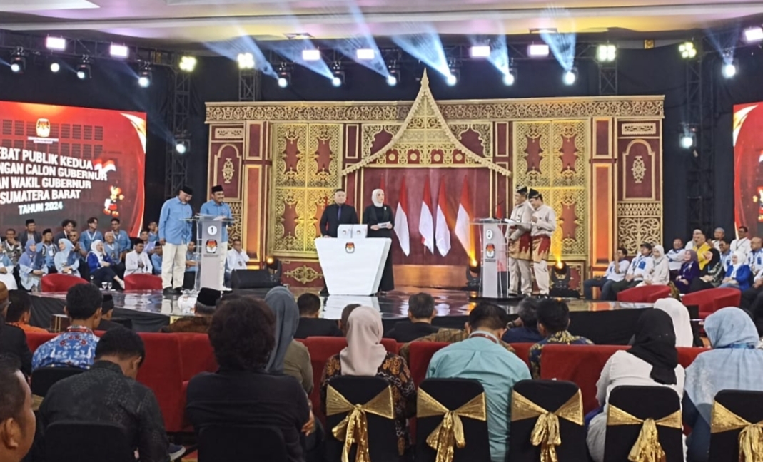 IWOSUMBAR.COM, PADANG -Debat putaran kedua pasangan calon gubernur dan wakil gubernur Sumatera Barat (Sumbar) pada Pemilihan Kepala Daerah (Pilkada) serentak 2024 digelar pada Selasa (19/11) malam di Hotel Truntum, Padang.