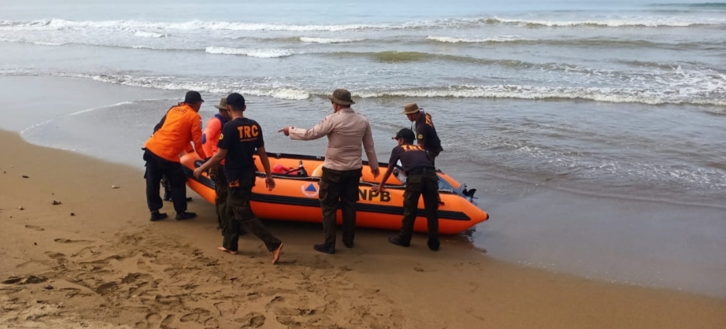 Pencarian oleh tim BPBD dilakukan dengan metode penyisiran pantai dengan menggunakan peralatan pendukung.