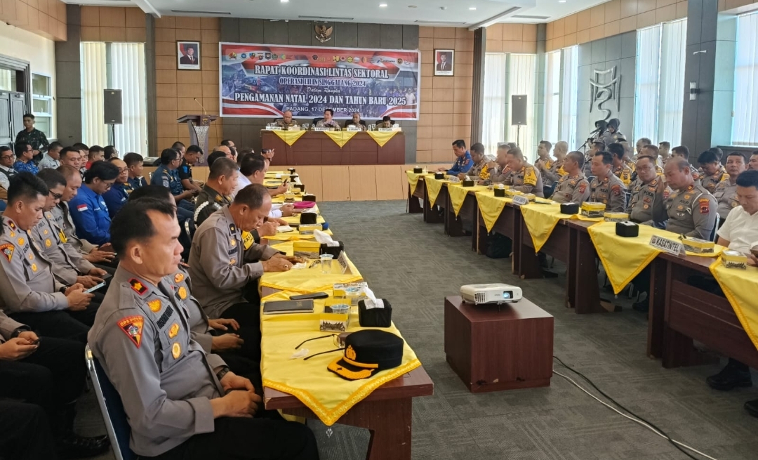 IWOSUMBAR.COM, PADANG- Polda Sumatera Barat gelar Rapat Koordinasi (Rakor) Lintas Sektoral Operasi Lilin Singgalang 2024 untuk pengamanan perayaan Natal 2024 dan Tahun Baru 2025. Di Ruang Soekanto, lantai IV Mapolda, Selasa (17/12).