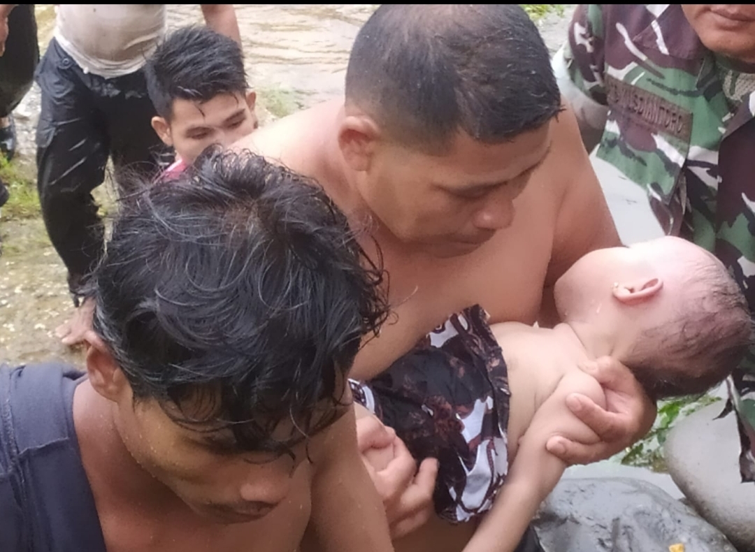Arsi (1 tahun 8 bulan), ditemukan pada pukul 08.35 WIB sejauh 500 meter dari lokasi kejadian dalam kondisi meninggal dunia.