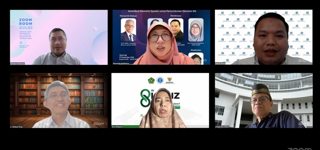 Diskusi yang diselenggarakan secara daring Jum’at (27/12) ini menghadirkan para pakar di bidang ekonomi dan keuangan syariah yang memberikan pandangan dan solusi strategis untuk mengoptimalkan peran ekonomi syariah dalam mencapai target pertumbuhan ekonomi 8% di masa mendatang.