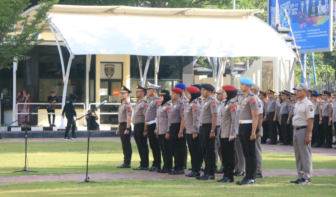 IWOSUMBAR.COM, Kepolisian Daerah Sumatera Barat (Polda Sumbar) menggelar upacara kenaikan pangkat bagi personelnya berlangsung di depan Mapolda pada Selasa (31/12/24).