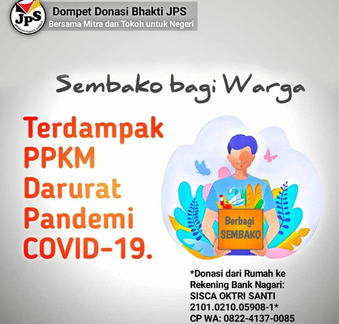Si Sumatera Barat menyikapi hal tersebut para pemimpin media yang tergabung dalam Jaringan Pemred Sumbar (JPS) tergerak untuk menghimpun donasi bagi UMKM dan warga terdampak PPKM Darurat di Kota Padang.