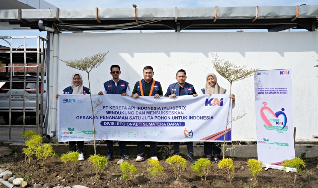 IWOSUMBAR.COM, PADANG -Stasiun-stasiun kereta api di Sumatera Barat kini tampak makin segar dan asri. Dalam rangka memperingati Hari Gerakan Satu Juta Pohon, PT Kereta Api Indonesia (Persero) Divisi Regional II Sumatera Barat menanam sebanyak 470 pohon di delapan stasiun, yakni Stasiun Padang, Bukit Putus, Indarung, Pariaman, Pulau Air, Naras, Tabing, dan Pauh Lima.