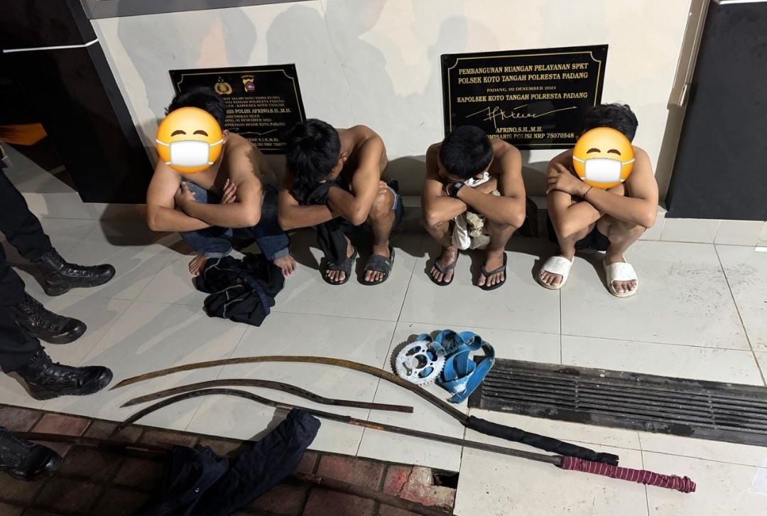 “Dari keempat remaja tersebut, kami menyita sejumlah barang bukti berupa senjata tajam, seperti klewang panjang dan gear sepeda motor,” ungkapnya. Saat ini, pelaku diamankan di Polsek Koto Tangah.