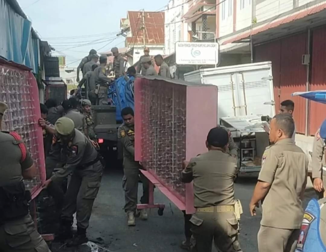 Penertiban ini dilakukan setelah para pedagang meninggalkan barang dagangan mereka begitu saja setelah berjualan.