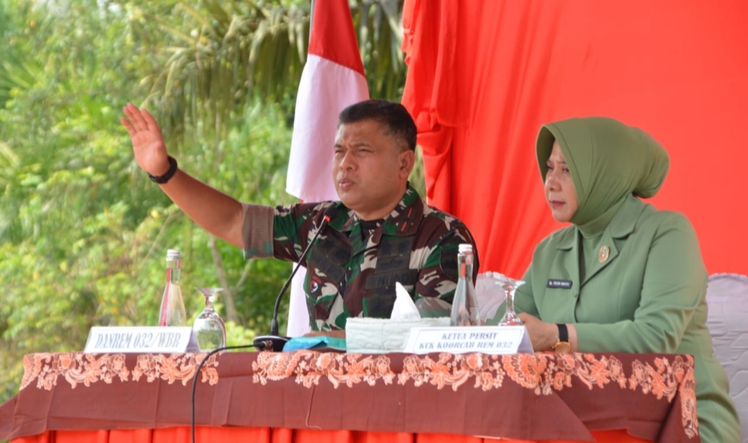 Turut diikuti oleh Kasi Ren Korem 032/Wbr, Kasiter Kasrem 032/Wbr, Dandim 0310/SSJ, serta Ketua Persit KCK Koorcab Rem 032.
