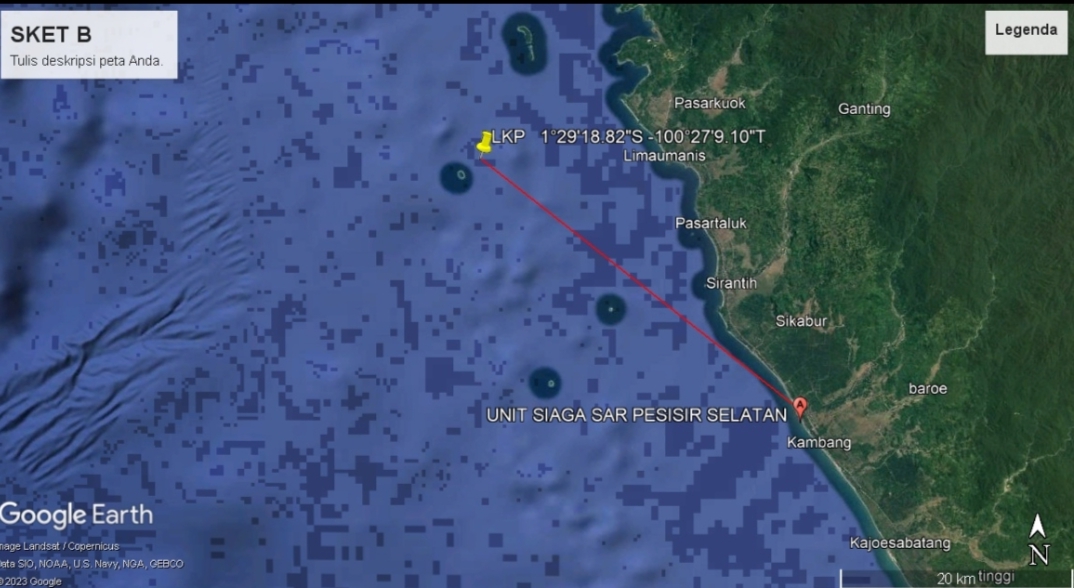 Dikatakan, Jody anggota SAR Padang, perjalanan tim SAR ke lokasi diperkirakan membutuhkan waktu sekitar satu jam dengan jarak tempuh 18 mil laut.
