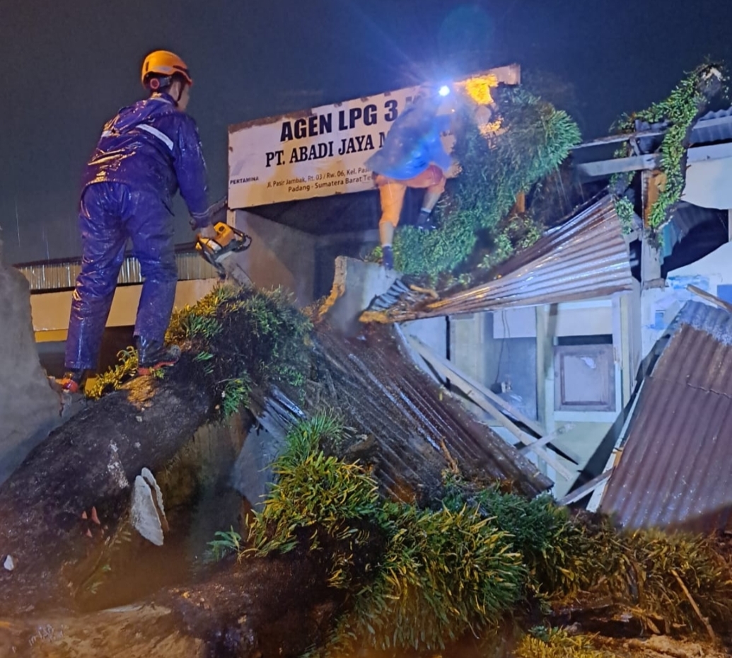 “Pohon dengan panjang sekitar 12 meter dan diameter 100 cm itu menyebabkan kerugian materiil yang diperkirakan mencapai Rp15 juta”, ujar Hariko Tim BPBD Padang