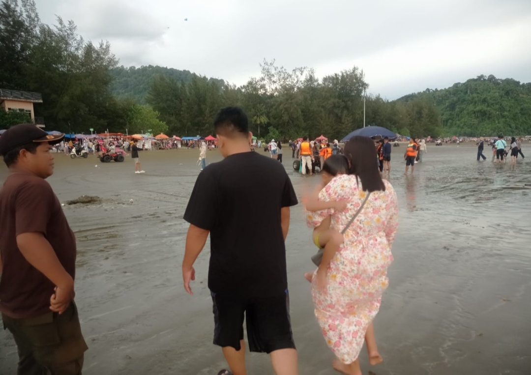 Dari pantauan dilapangan, Hingga pukul 15.40 WIB, jumlah pengunjung di lokasi wisata tersebut diperkirakan mencapai 2.000 orang.