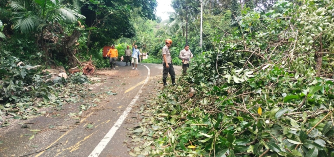 Proses evakuasi pohon tumbang berhasil diselesaikan dengan lancar, sehingga akses jalan kembali normal.