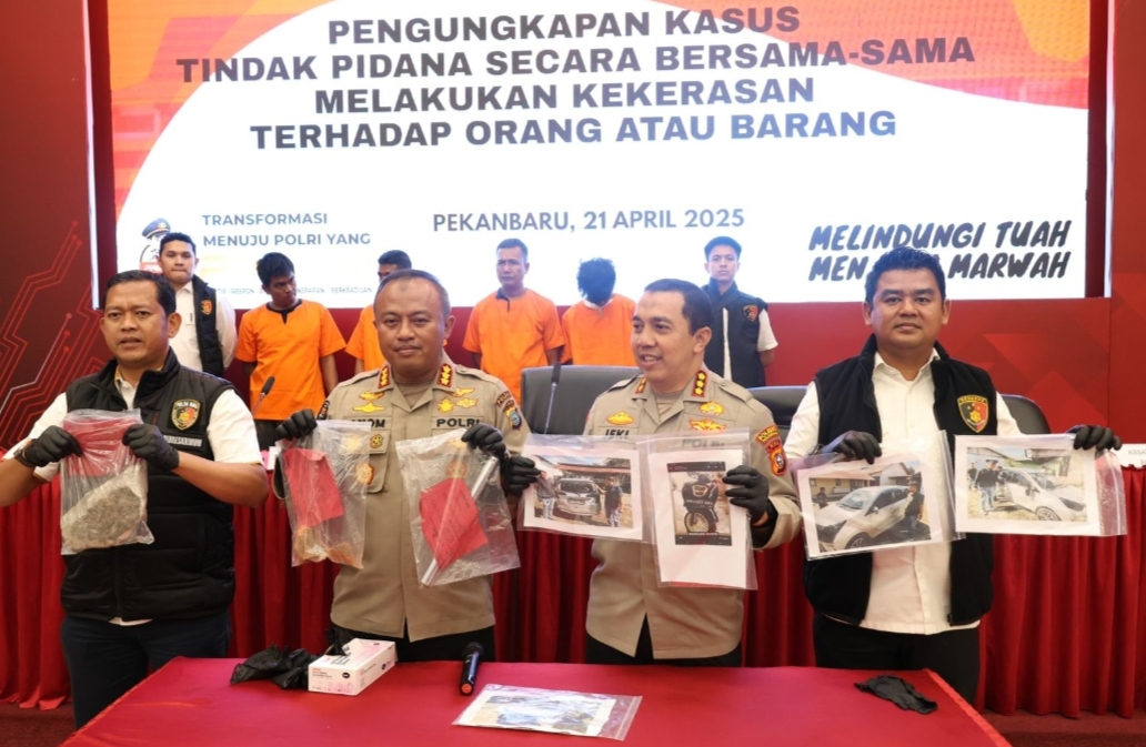 “Ketuanya adalah E alias Kevin. Dari pendataan kita, ada 11 orang dan 7 debt collector masih buron,” demikian disebutkan Direktur Reserse Kriminal Umum Polda Riau, Kombes Asep Darmawan, Selasa (22/4/2025). Dan meminta kepada 7 debt collector yang kabur segera untuk menyerahkan diri.