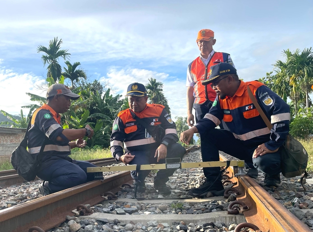 Pemeriksaan menyeluruh mencakup kondisi rel, bantalan, ballast, wesel, sistem persinyalan, keamanan emplasemen, aset PT KAI, lokasi dan kondisi perlintasan, serta sistem drainase di sepanjang jalur.