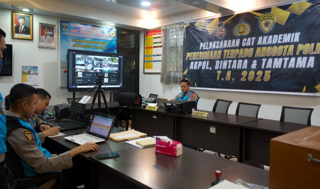 IWOSUMBAR COM, PADANG- Dalam rangka mendukung proses seleksi terpadu penerimaan anggota Polri Tahun Anggaran 2025, Bidang Hubungan Masyarakat (Bidhumas) Polda Sumbar melaksanakan peliputan kegiatan Uji Computer Assisted Test (CAT) Akademik bagi calon Taruna Akpol di SMKN 2 Padang, Sabtu (3/5).