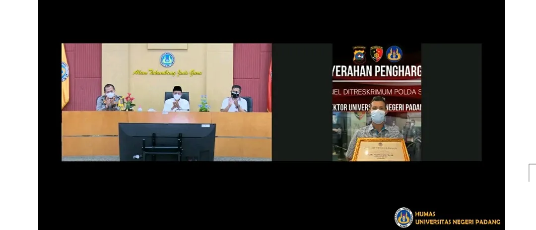 Pengharagaan tersebut merupakan bentuk apresiasi dan terima kasih Rektor serta seluruh civitas akademika UNP kepada Polda Sumbar dibidang Keamanan dan Ketertiban Masyarakat (kamtibmas).