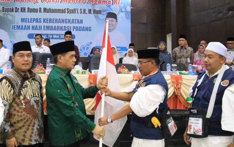 IWOSUMBAR.COM, PADANG – Wakil Menteri Agama (Wamenag) Romo Muhammad Syafi’i secara resmi melepas keberangkatan jemaah haji Kloter 08 Embarkasi Padang pada Jumat malam (16/5), yang juga menjadi kloter perdana untuk gelombang kedua.