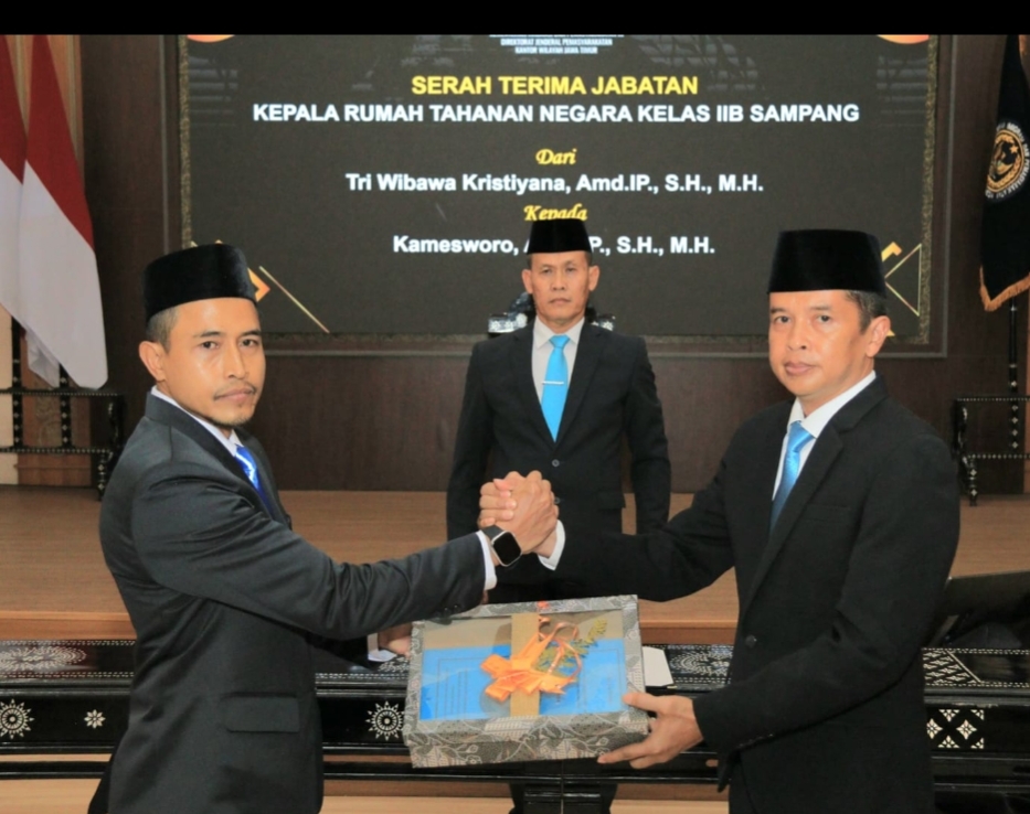 IWOSUMBAR.COM, SAMPANG – Tongkat kepemimpinan di Rumah Tahanan Negara Kelas IIB Sampang berganti. Kamesworo dilantik dan diambil sumpah jabatannya sebagai Kepala Rutan Sampang oleh Kepala Kantor Wilayah Direktorat Jenderal Pemasyarakatan (Ditjenpas) Jawa Timur pada Rabu (21/05).