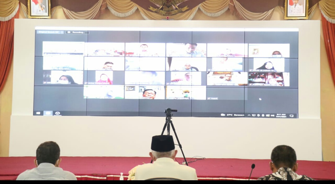 Auditorium Gubernuran, diikuti oleh 6 kepala OPD, Kepala Dinas Kesehatan dan Direktur rumah sakit se-Sumbar melalui zoom meeting. Sabtu (31/7/2021)