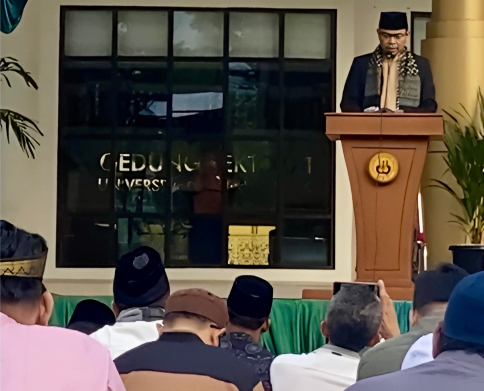 Rektor UNP, dalam sambutannya, mengajak jamaah untuk menjadikan Idul Adha sebagai momentum refleksi diri dan penguatan empati sosial.