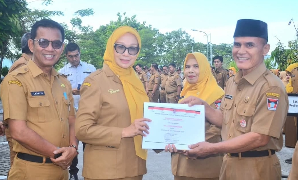 IWOSUMBAR.COM, PADANG – Pelaksana Harian (Plh) Sekretaris Daerah Kota Padang, Corri Saidan, memimpin apel gabungan Aparatur Sipil Negara (ASN) di lingkungan Pemerintah Kota Padang, Senin (7/7/2025) pagi. Apel berlangsung di pelataran parkir Kantor Balai Kota Aie Pacah.