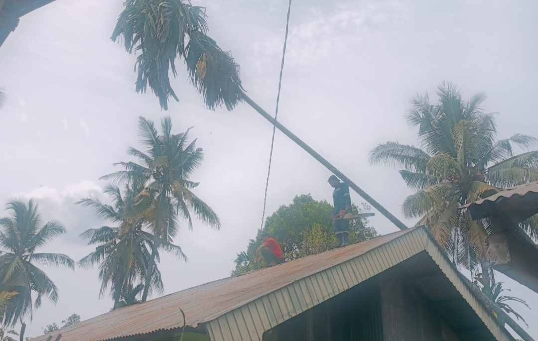 IWOSUMBAR.COM, PADANG — Sebuah pohon pinang tumbang dan menimpa rumah warga di kawasan Simpang Gadut, Kelurahan Banda Buek, Kecamatan Lubuk Kilangan, Kota Padang, Kamis (31/7/2025).