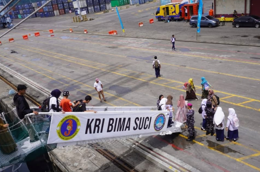 Regi Syahputra, siswa sekolah tersebut, mengaku terkesan setelah diajak berkeliling kapal. “Kami dikenalkan bagian-bagian kapal, keliling dek, dan melihat bendera dari berbagai negara. Seru sekali,” katanya.