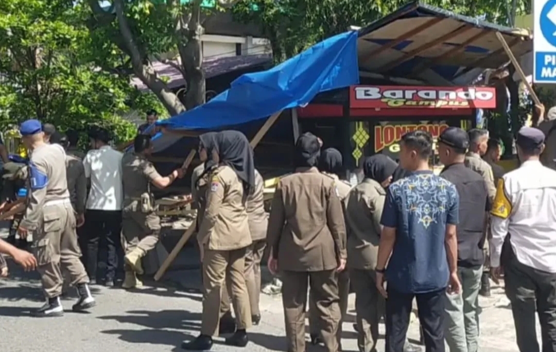 Penertiban dilakukan setelah sebelumnya pihak kecamatan memberikan surat teguran dan melakukan mediasi dengan para pedagang yang membandel.