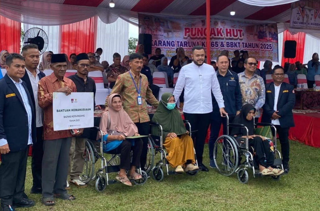 Peringatan HUT ke-65 Karang Taruna juga dirangkaikan dengan penyerahan sejumlah bantuan sosial, di antaranya kursi roda dari Kepala Balai Besar Pendidikan dan Pelatihan Kesejahteraan Sosial (BBPPKS) Padang, kacamata untuk warga, serta becak motor dari BAZNAS Kota Padang.