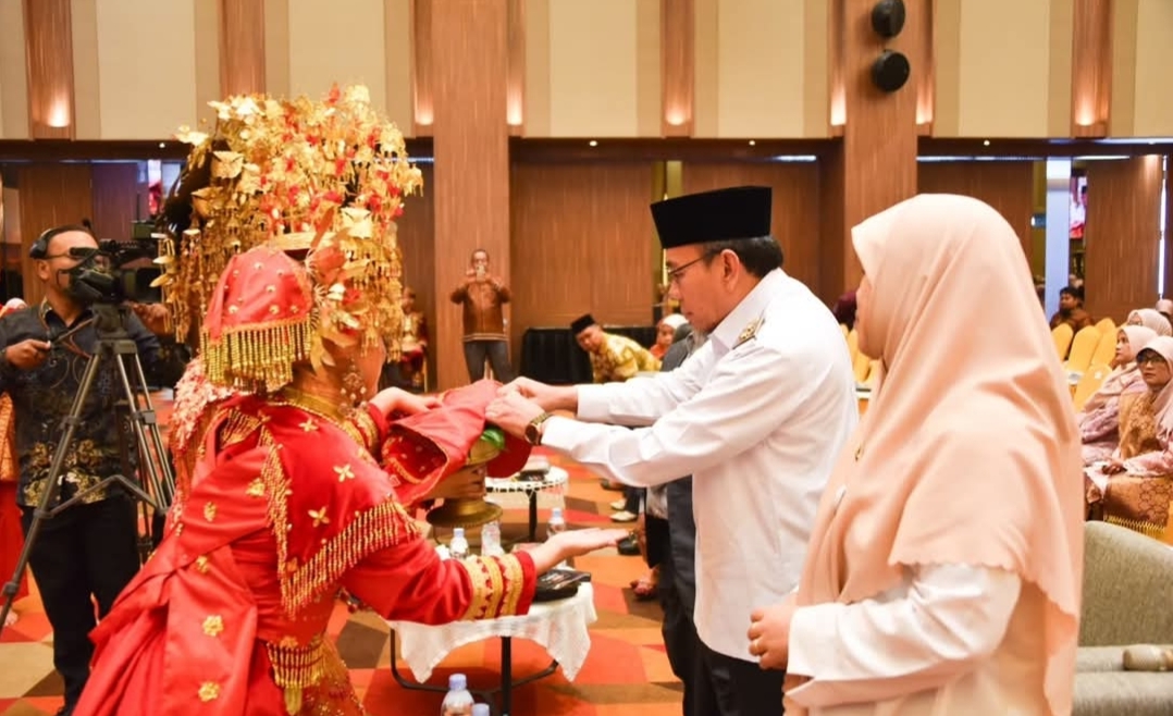 IWOSUMBAR.COM, PADANG- Wakil Wali Kota Padang, Maigus Nasir, menghadiri acara Pelantikan Lulusan SMK–SMAK Padang Angkatan ke-57 yang berlangsung di The ZHM Premiere Hotel Padang, Rabu (8/10/2025).