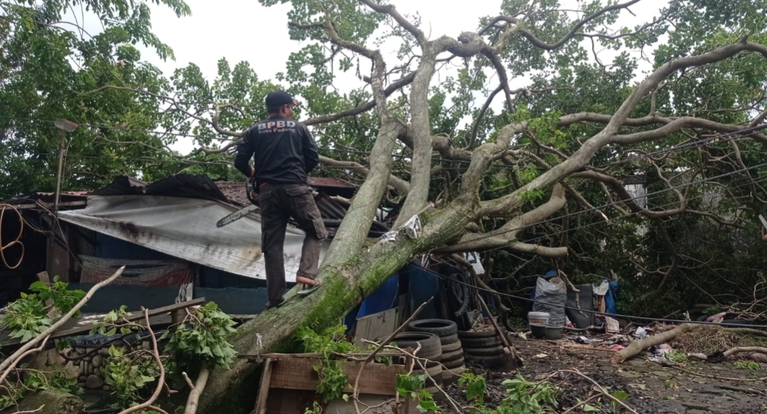 “Saat ini proses pembersihan masih berlangsung. Petugas BPBD dibantu pihak kelurahan, KSB, dan masyarakat sekitar untuk menyingkirkan batang pohon yang menimpa bengkel,” ujar petugas di lapangan.