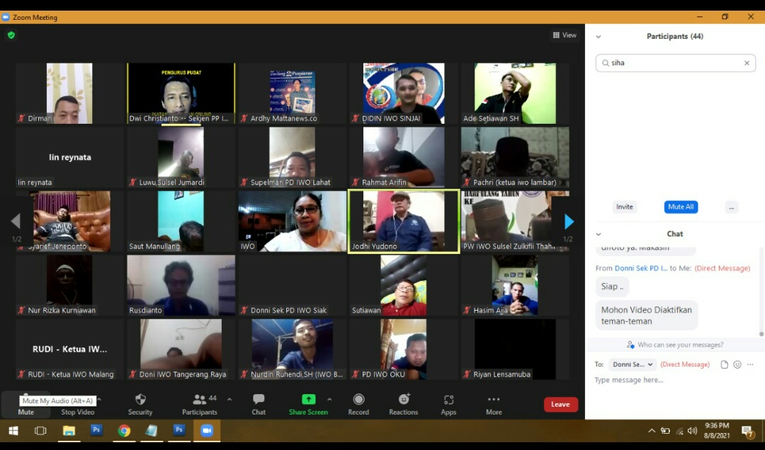 IWOSUMBAR.COM, JAKARTA- Pengurus dan anggota Ikatan Wartawan Online (IWO) dari seluruh Indonesia mengikuti pertemuan virtual dalam rangka memperingati Hari Ulang Tahun (HUT) IWO ke-9 dengan tema “Jiwa Raga Terjaga, Daya Hidup Menyala” pada Minggu (8/8/2021).