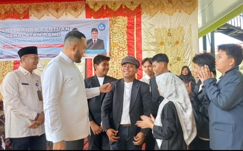 Upaya tersebut diwujudkan dengan penyerahan bantuan satu set alat band lengkap kepada sejumlah SMP di Kota Padang. Penyerahan dilakukan secara simbolis oleh Wali Kota Padang, Fadly Amran, di SMP Negeri 5 Padang, Jumat (31/10/2025), disaksikan Kepala Dinas Pendidikan dan Kebudayaan (Disdikbud) Kota Padang, Yopi Krislova, serta perwakilan sekolah penerima bantuan.