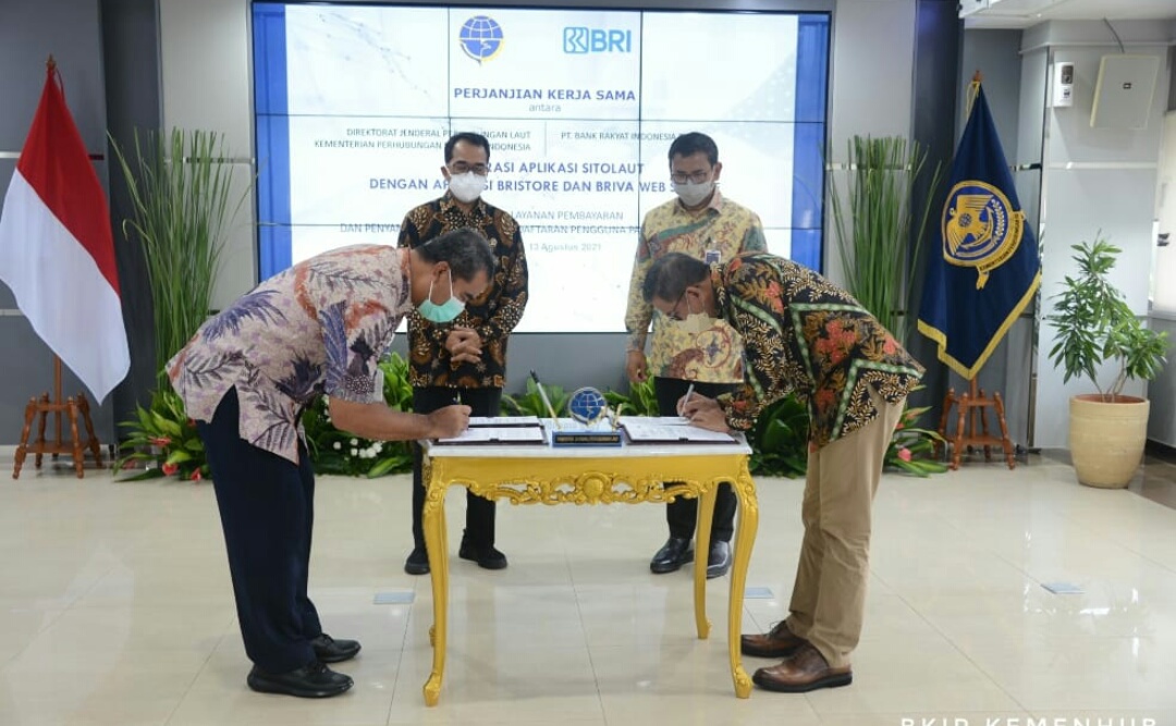 IWOSUMBAR.COM, Jakarta – Kementerian Perhubungan melalui Ditjen Perhubungan Laut berkolaborasi dengan Bank Rakyat Indonesia (BRI) untuk mengintegrasikan aplikasi Sitolaut dengan layanan perbankan digital BRI yaitu aplikasi BRISTORE dan BRIVA Web Service.